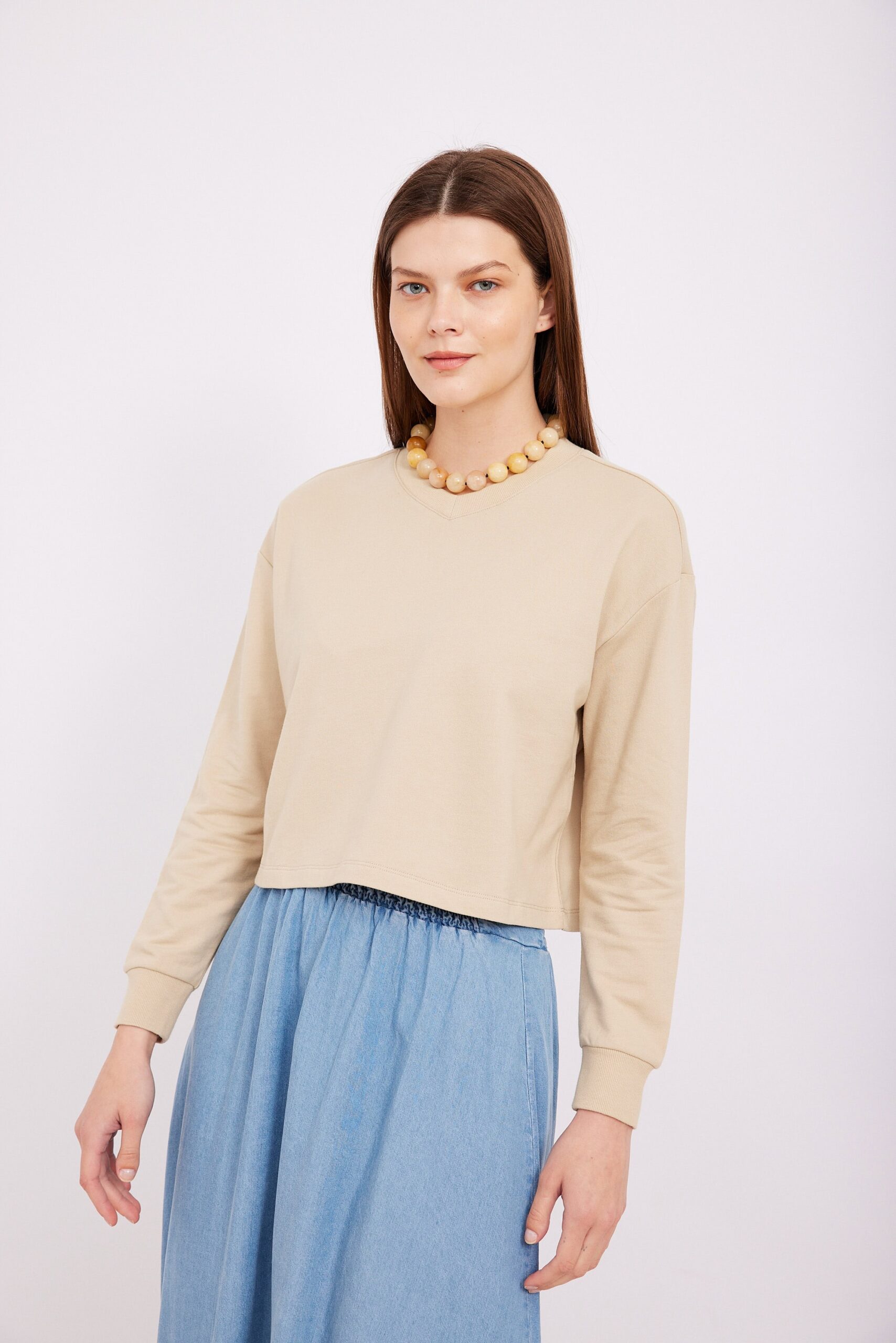 חולצה אופנתית עם מפתח וי עדין בצוואר,