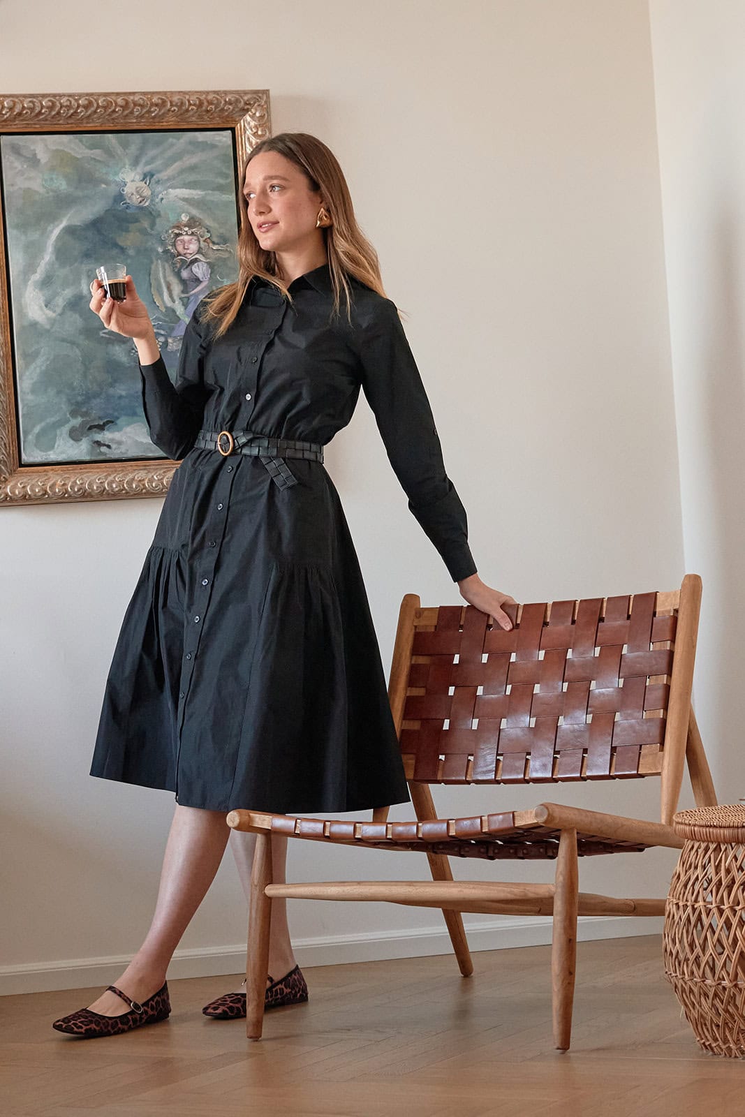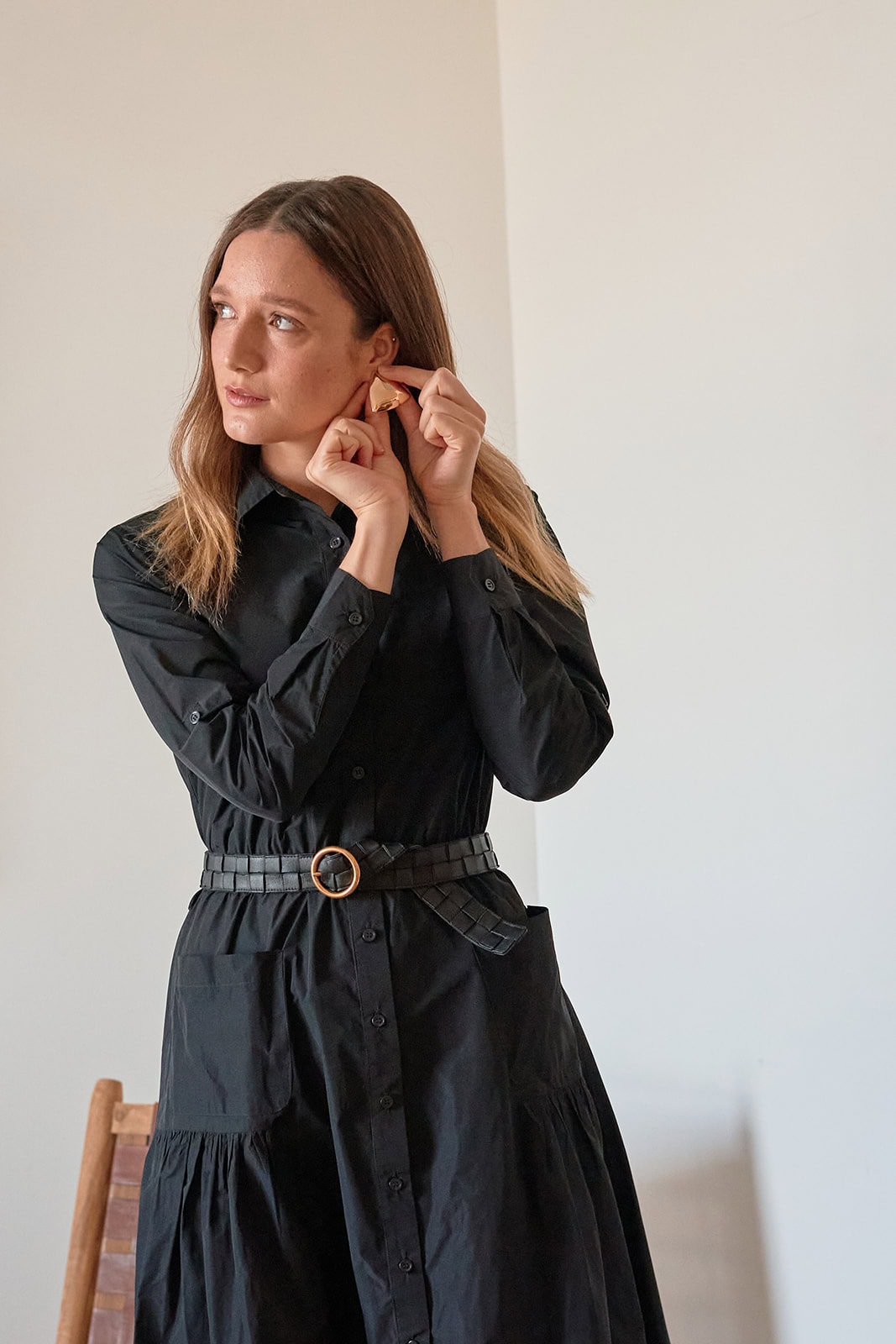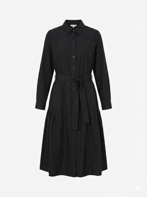 שמלת טאפט מכופתרת עם כיסים וחגורת טאפט וצווארון